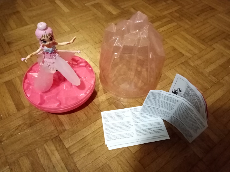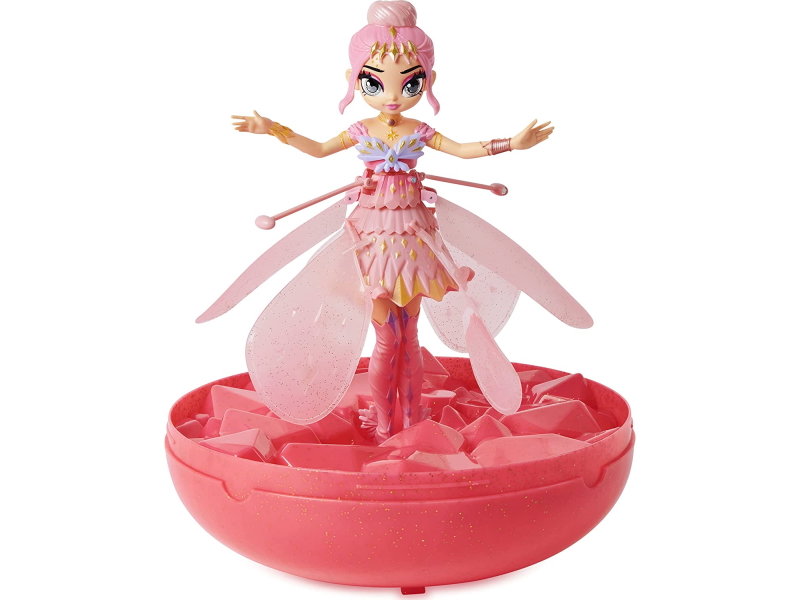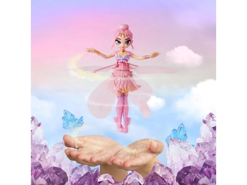 Place ta fée sur son socle puis appuie sur le bouton. Les ailes de la fée se mettent à tournoyer et la fée s'élance dans les airs. Regarde-la s'envoler puis dirige-la avec ta main : il suffit de placer ta main en dessous de la fée pour que ses ailes tournoient plus vite et qu'elle prenne de la hauteur.