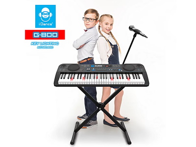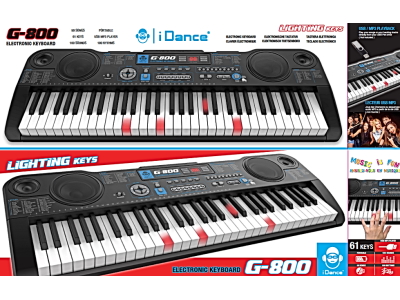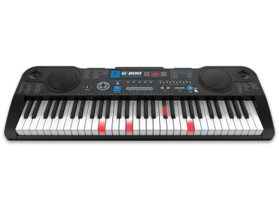 Clavier avec 61 touches lumineuses, 43 musiques, 20 sons, 30 rythmes. 8 boucles audio enregistrées avec des vrais musiciens. Des rythmes actuels et 43 chansons avec fonction.