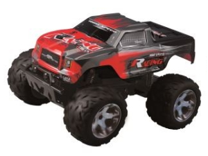 Véhicule Monster Racing Truck radiocommandé à l'échelle 1/10. Etanche aux éclaboussures. Batterie 4.8V 400mAh incl., batterie télécommande 9V excl.