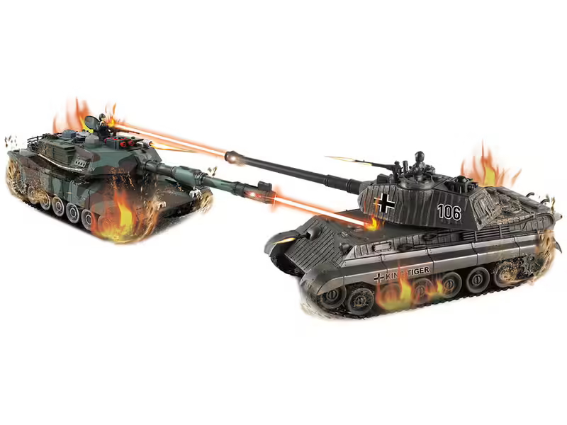 Véhicules de guerre toutes fonctions avec une tourelle rotative à 320°. Ces véhicules peuvent grimper à 45° et ont un système de recul comme les vrais lorsqu'ils tirent. Pour plus de réalisme ils émettent des sons et lumières réalistes lorsqu'ils tirent avec le canon.